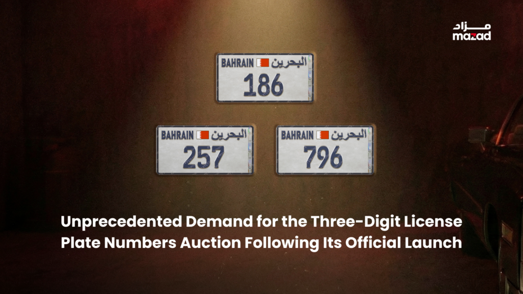 As part of its ongoing commitment to delivering distinctive and high-quality digital experiences, Mazad announced an unprecedented level of interest in its recently launched three-digit license plate numbers auction. This auction, the first of its kind on the Mazad platform, features the numbers 186, 257, and 796. Each plate in this rare set forms an integral part of the history of vehicle registration in the Kingdom of Bahrain.