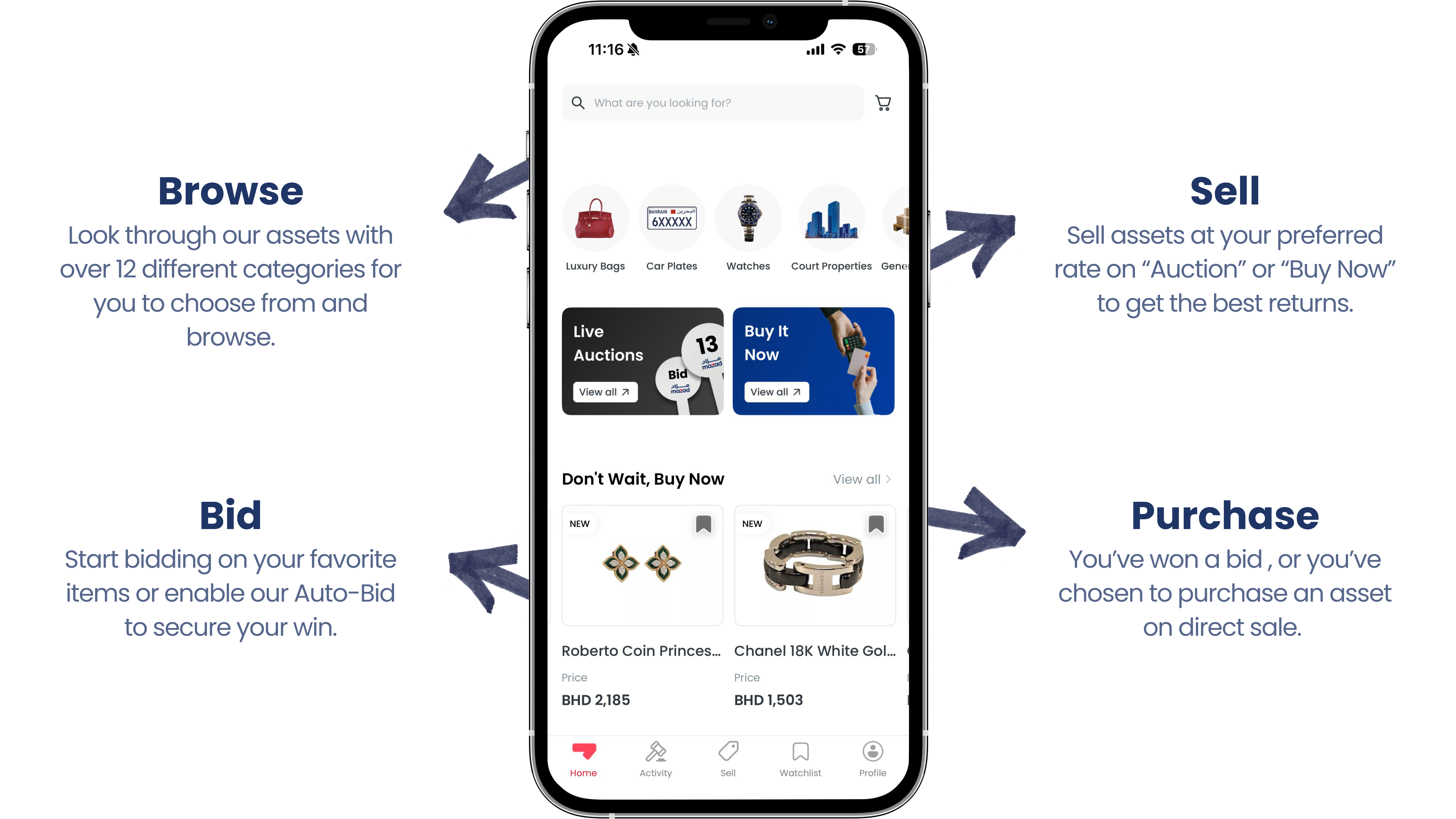 Mazad B.S.C. © known as “Mazad”, was founded in April 2017 to organize and supervise auctions in the Kingdom of Bahrain. Tasked with managing auctions for a variety of assets, Mazad collaborates with governments and top tier companies whilst maintaining the highest standards in the field.